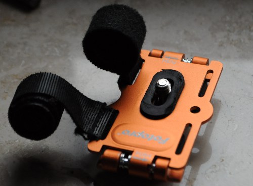 Um es kurz zu machen: Der Fotopro Flip Motion Mount for Digital Camera/Camcorder ist aus Aluminium, schön eloxiert und macht für den Preis auch einen ganz guten Eindruck. An den Fixierbändchen wurde jedoch gespart. Der Klettverschluss ist durchgehend. Deshalb man muss sie umständlich über Kreuz legen, oder aber nach der Lasche um 180 Grad verdrehen, damit der Klettverschluss greifen kann.